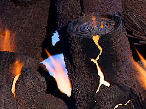 Strategic openings in the logs let flames break through the surface, mimicking the look and movement of real burning wood.